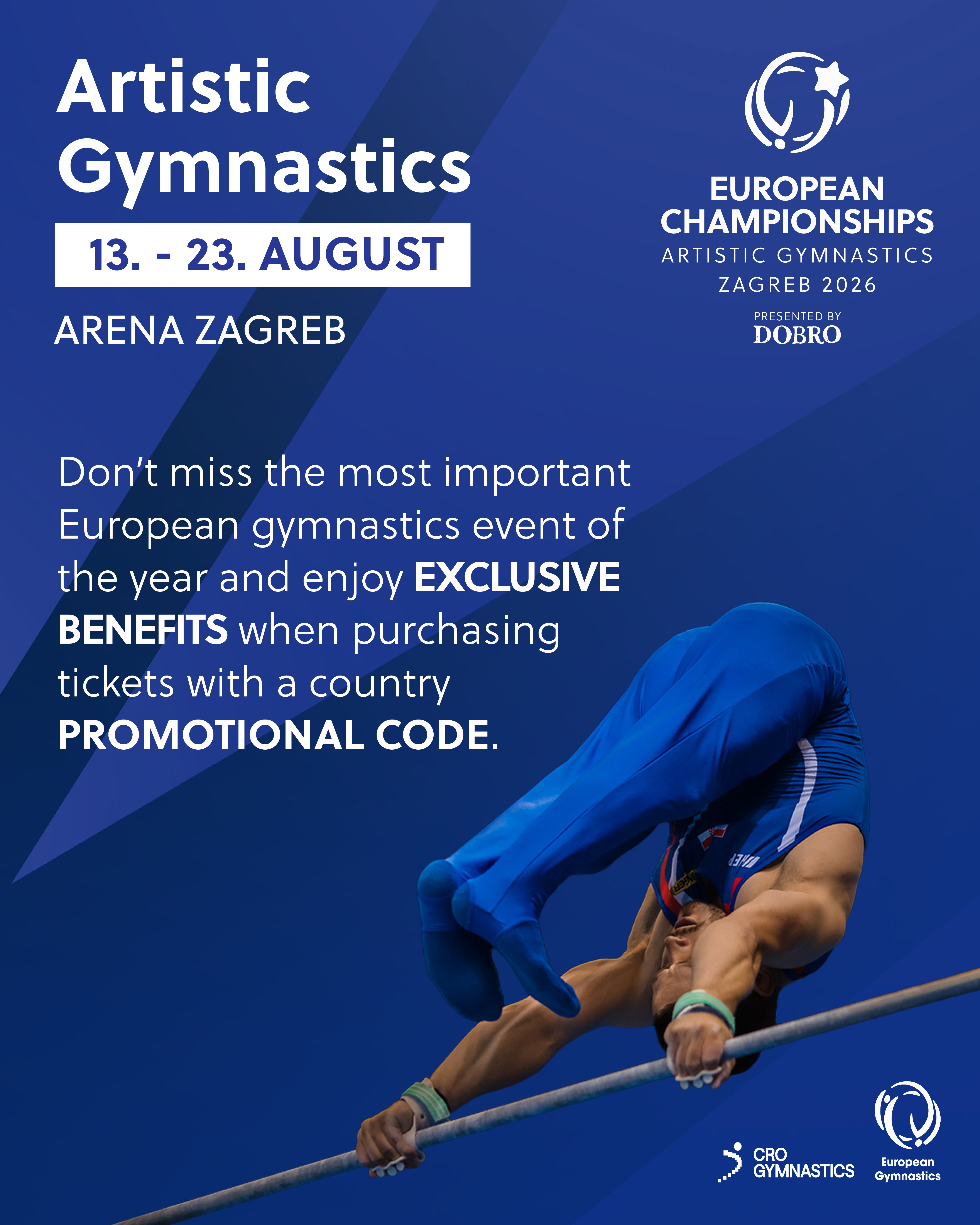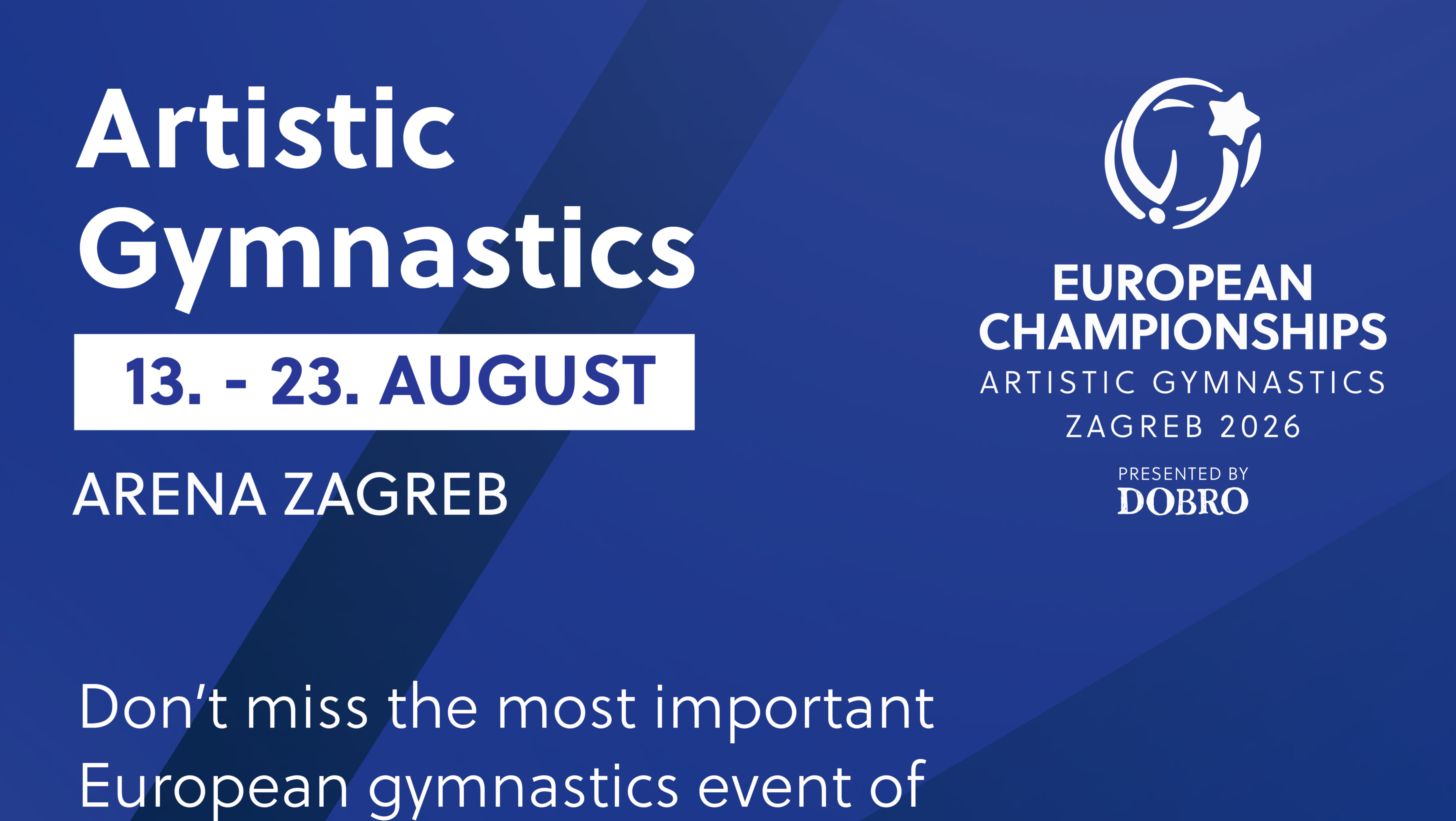 Ve dnech 13.-23. srpna 2026 se v chorvatském Záhřebu uskuteční Mistrovství Evropy ve sportovní gymnastice a my pro vás máme oficiální slevový kód!