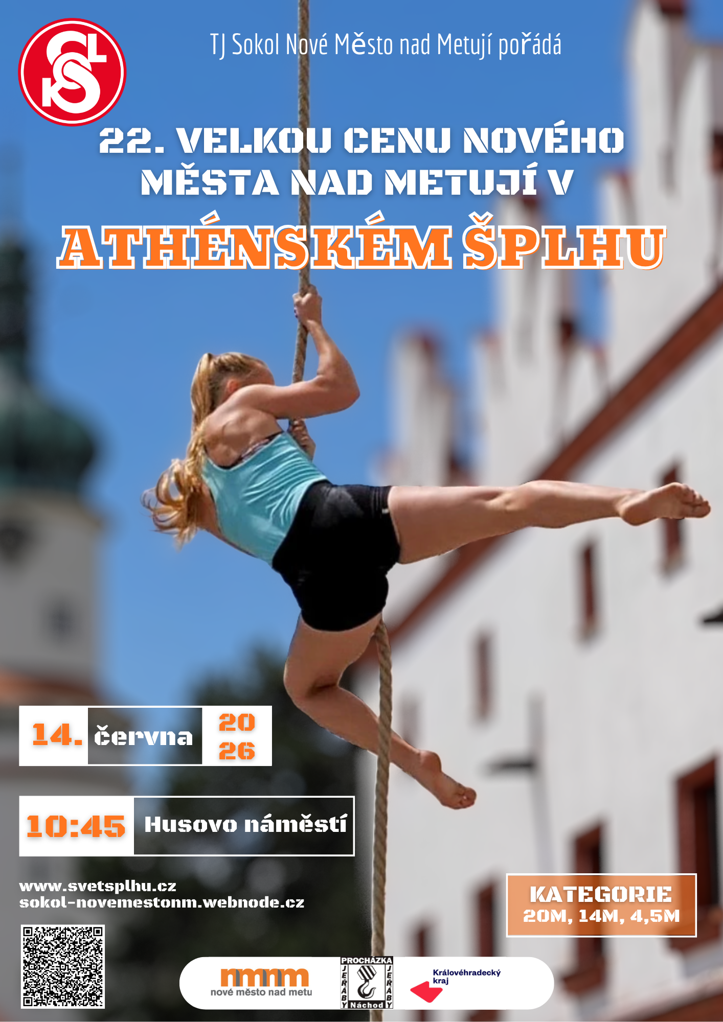 V neděli 14. června 2026 ožije Husovo náměstí v Novém Městě nad Metují jedinečnou sportovní událostí. Uskuteční se zde Velká cena Nového Města nad Metují v athénském šplhu, která slibuje atraktivní podívanou pro širokou veřejnost i sportovní nadšence.