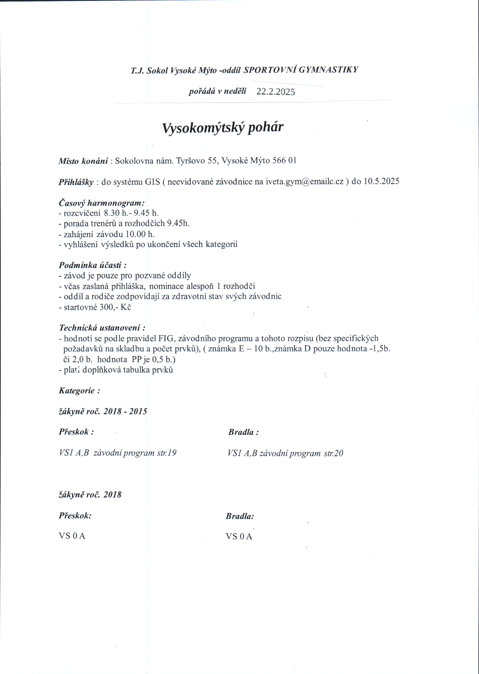 | Pořadatel: | Tělocvičná jednota Sokol Vysoké Mýto |